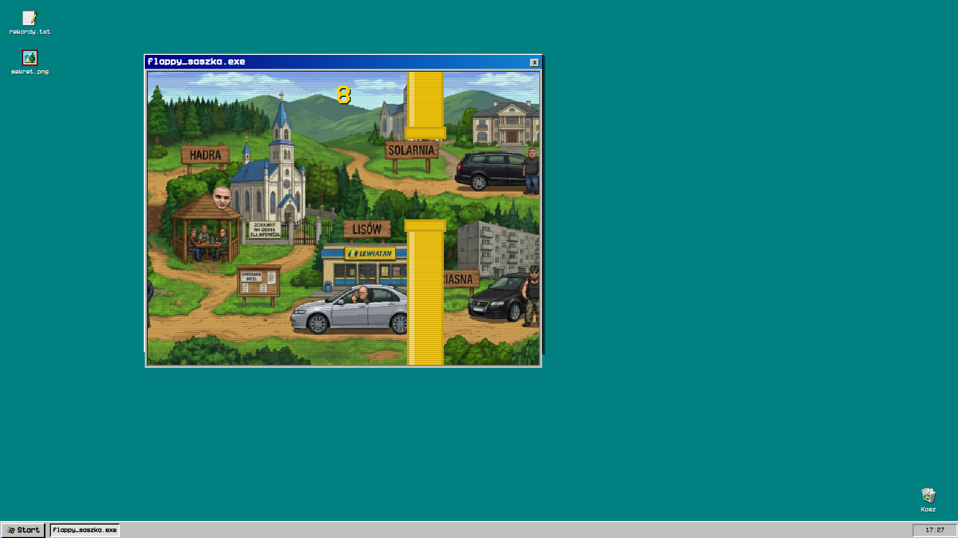 Witamy w Flappy Saszka: Game of the Year Edition – ostatecznym symulatorze życia miejskiego ptaka (lub latającej głowy), osadzonym w nostalgicznym środowisku systemu operacyjnego z lat 90. To nie jest zwykły klon Flappy Bird. To pełnoprawne doświadczenie "OS-in-a-Game".